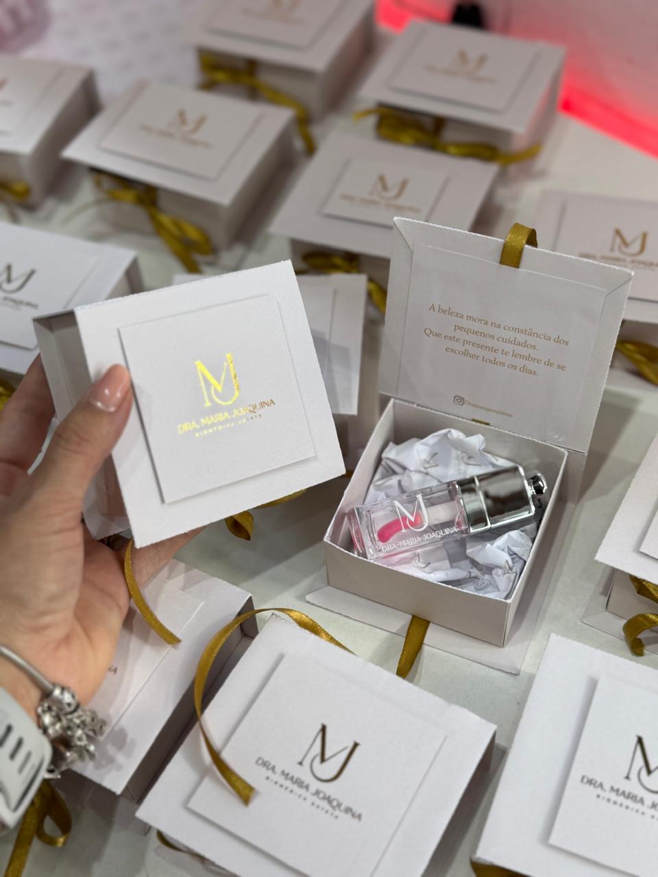 Caixinha de papel formato livro. Personalizada na cor que você desejar. Aplicação de efeito metalizado na tampa + lacinho de cetim.