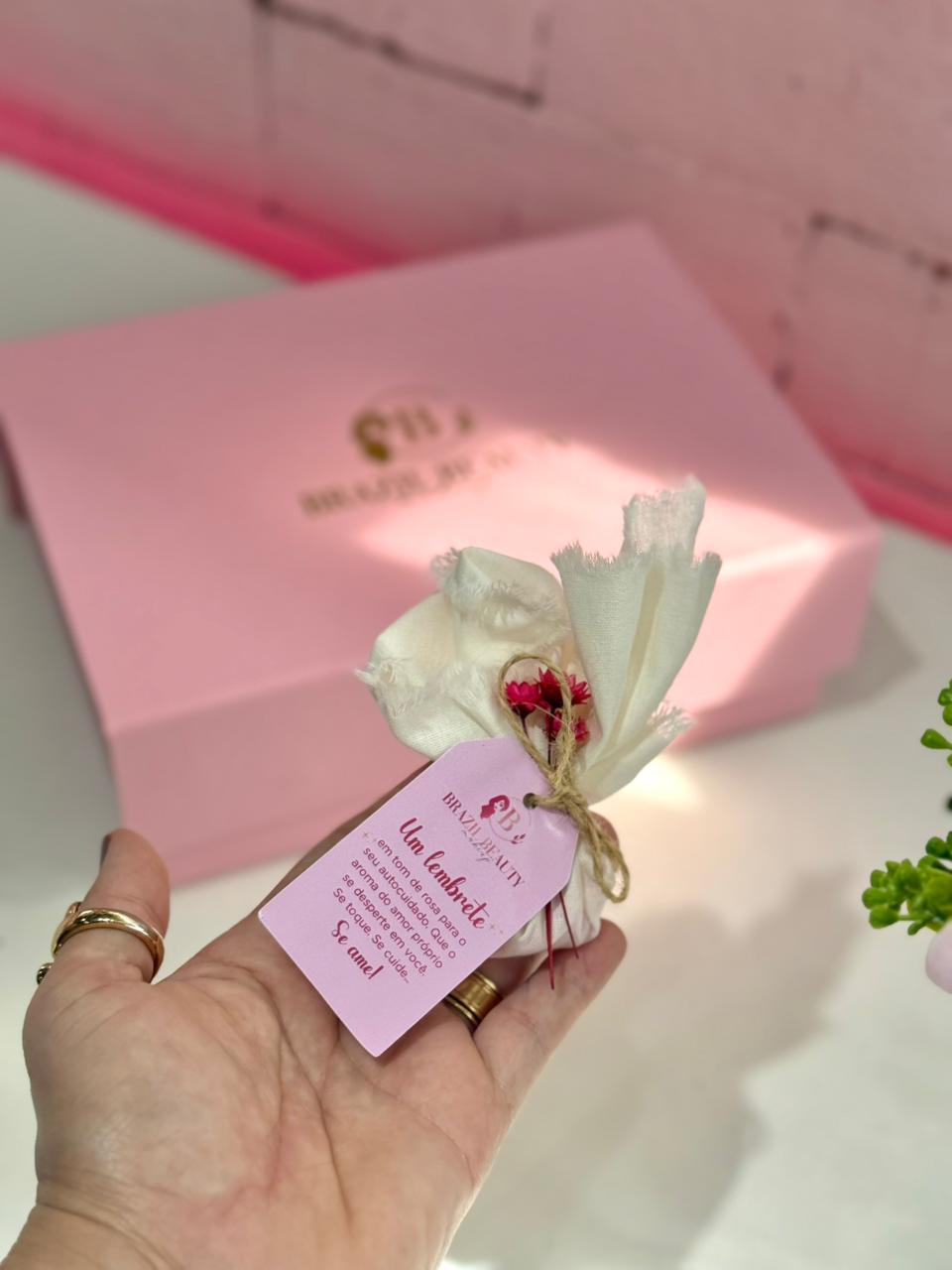Mini bolinhas aromatizadas (com a essência da sua escolha) - consulte as disponíveis, tecido no tom da sua marca, florzinha para sempre viva + mini tag. Envolvidas com tecido.
